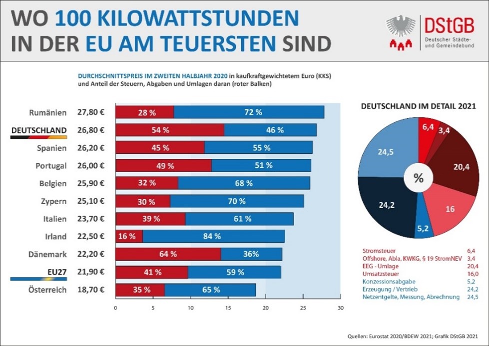 Der Bundesrat drängt gegenüber der Bundesregierung auf eine systematische Reform der Abgaben und Umlagen im Energiesektor. Eine entsprechende Entschließung hat die Länderkammer am 26. März 2021 gefasst. (Drucksache 93/21 - Beschluss) Die Initiative des Bundesrats ist mit Blick auf die im europaweiten Vergleich hohen Energiekosten in Deutschland zu begrüßen.