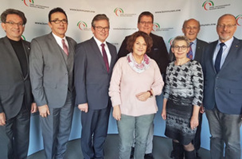 - Foto: Lehrer / StGB NRW Bild anzeigen (v.r.n.l.) Präsident Bürgermeister Roland Schäfer (Stadt Bergkamen) mit den Vizepräsidenten und -präsidentinnen Bürgermeister Dietmar Heß (Gemeinde Finnentrop), Bürgermeisterin Marion Weike (Stadt Werther), Bürgermeister Kai Abruszat (Gemeinde Stemwede), Fraktionsvorsitzende Beate Schirrmeister-Heinen (Stadt Erkelenz), Bürgermeister Michael Dreier (Stadt Paderborn), Bürgermeister Prof. Dr. Christoph Landscheidt (Stadt Kamp-Lintfort) und Bürgermeister Dr. Eckhard Ruthemeyer (Stadt Soest)