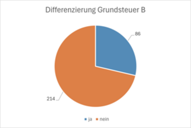 - Bild anzeigen Ganz überwiegend machen die Kommunen von der Differenzierungsmöglichkeit bei der Grundsteuer B in 2025 keinen Gebrauch: 214 von 300 Kommunen bleiben bei einem einheitlichen Hebesatz.
