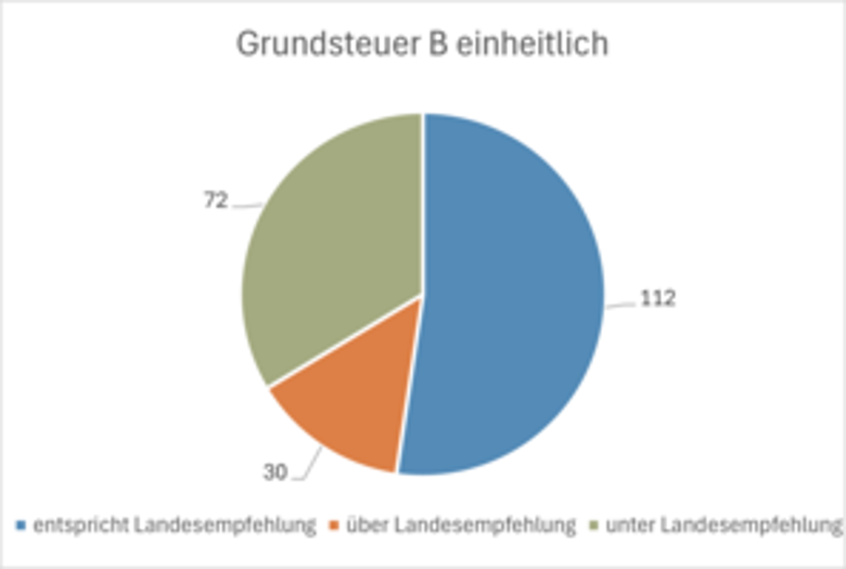 - Im Durchschnitt liegt der Hebesatz für eine einheitliche Grundsteuer B mit 701,71 Punkten unter der Landesempfehlung von 720,94 Punkten.